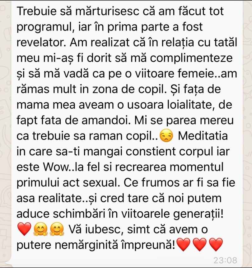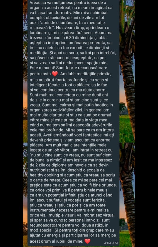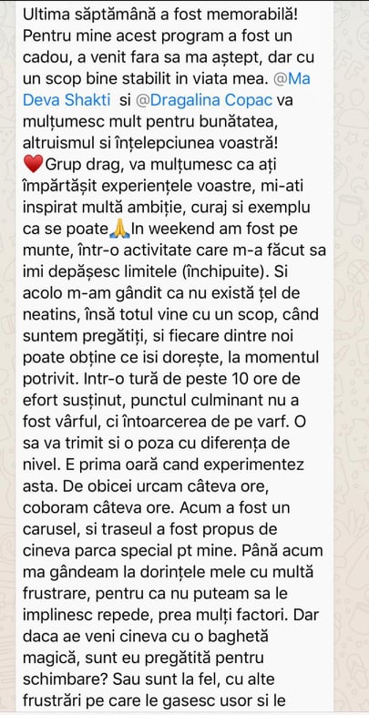 *In grup suntem IMPREUNA si ne bucuram de energia colectiva, ne simtim liberi sa impartasim. Daca nu iti doresti sa primesti notificarile, atunci poti da pe SILENT notificarile pe parcursul celor 8 zile.