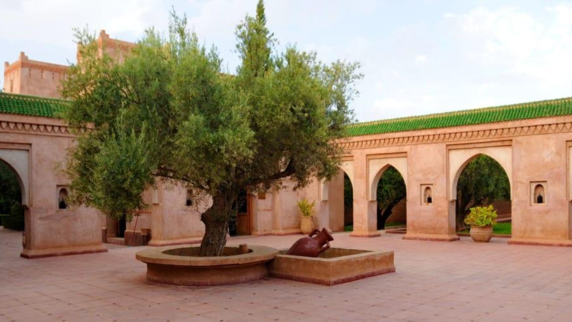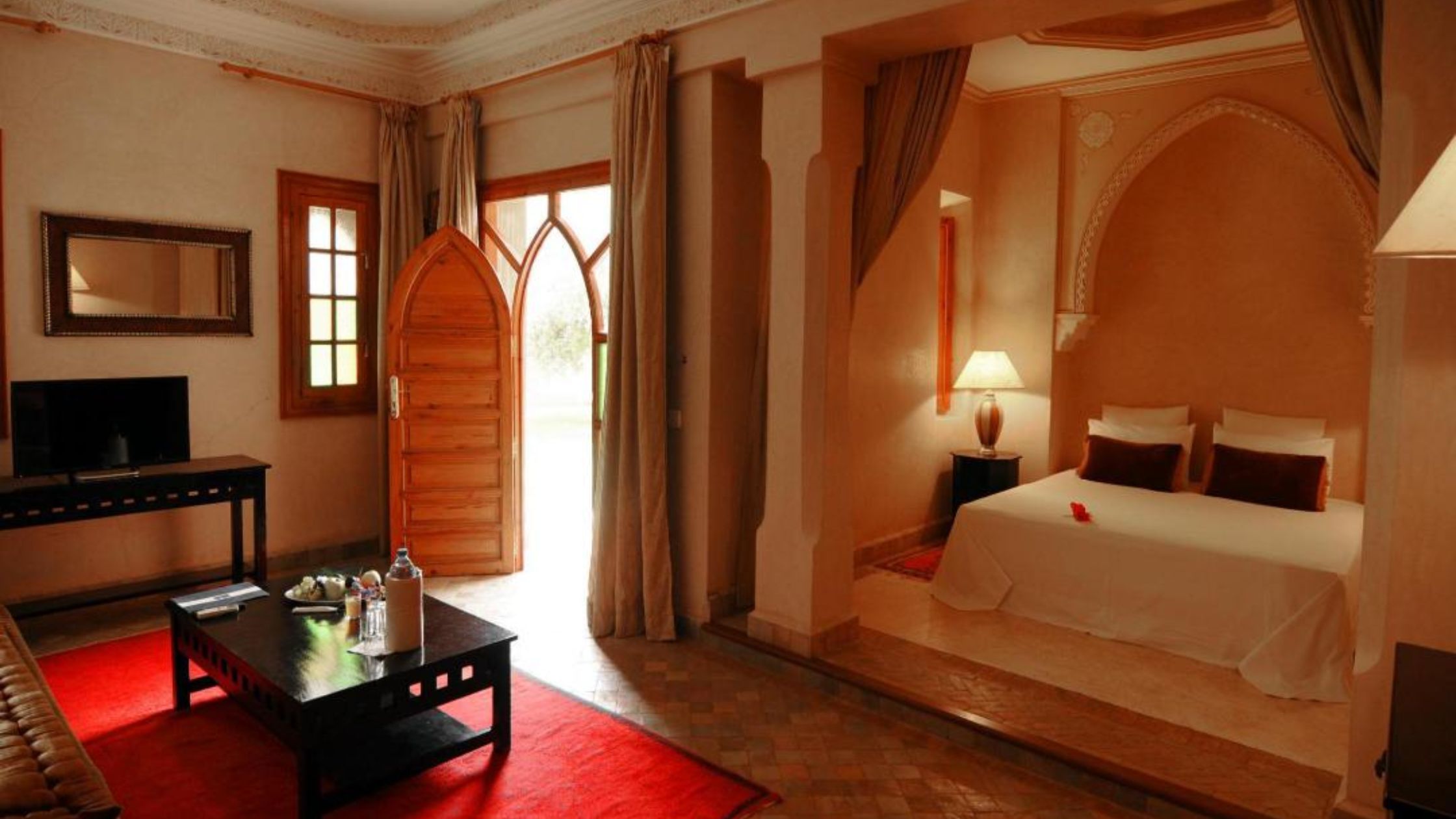 La un complex-riad marocan autentic, half board – Maison des Oliviers, cu arhitectură uimitoare tradițional-marocană, grădini tropicale, candelabrele magnifice, hammam tradițional, toate implantate maiestuos în inima zonei istorice Marrakech – Palmerie, într-un parc luxos de 10 acri, cu 2 piscine exotice de 600 mp!
