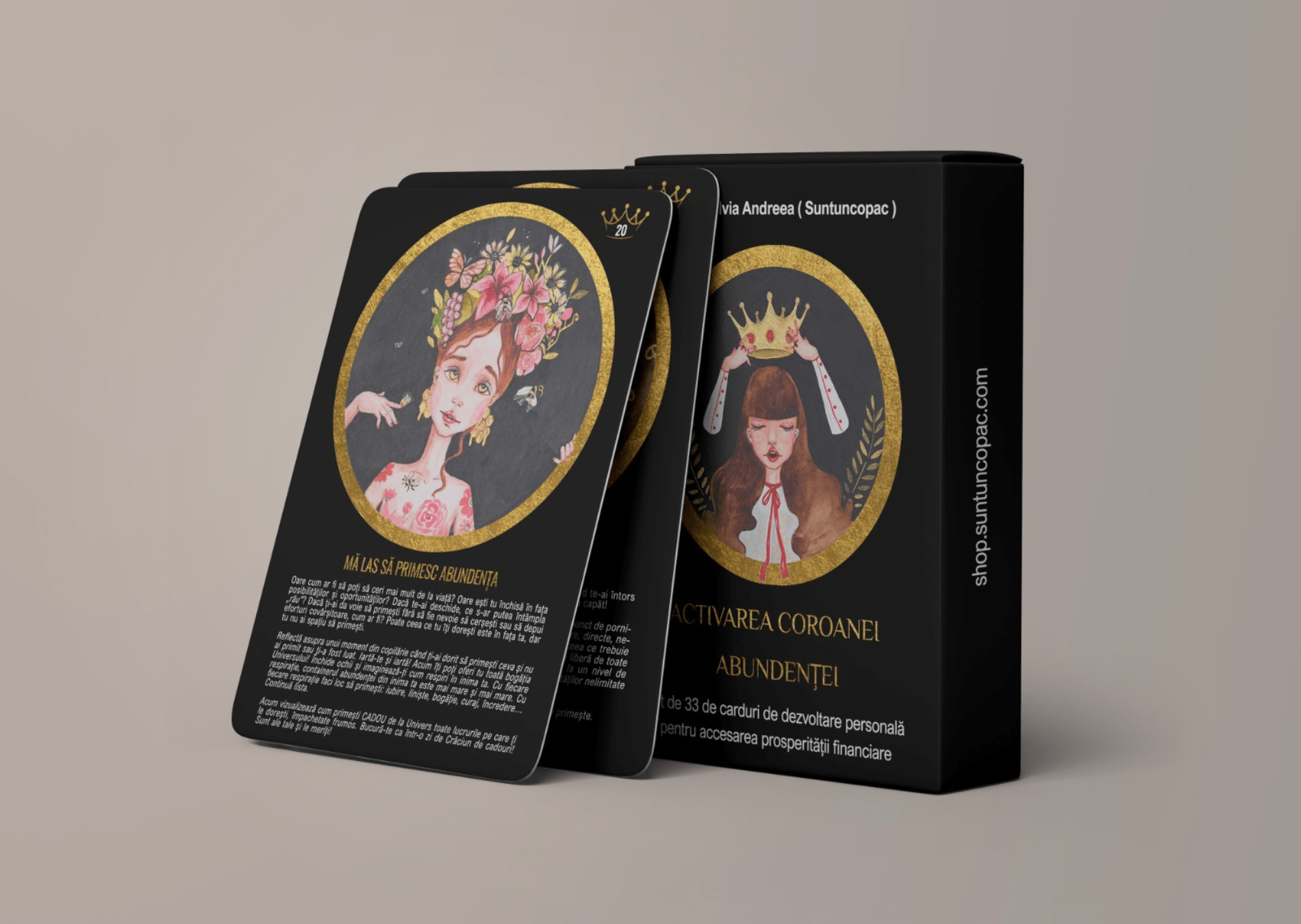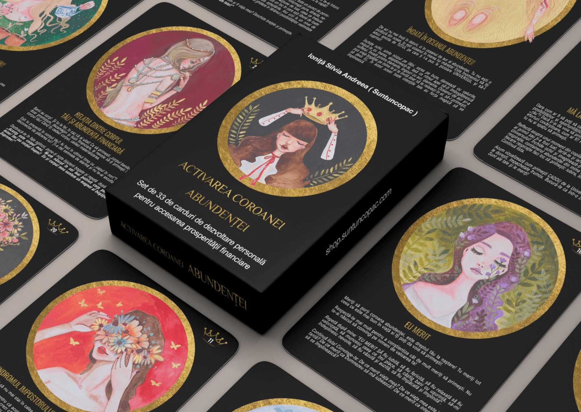 Dacă vrei să extinzi lucrul cu aceste carduri, pe shop.suntuncopac.com găsesți cursurile online „Happy Money” și „Misiune de viață” la care ai REDUCERE 50% dacă folosești codul #coroanaabundentei.