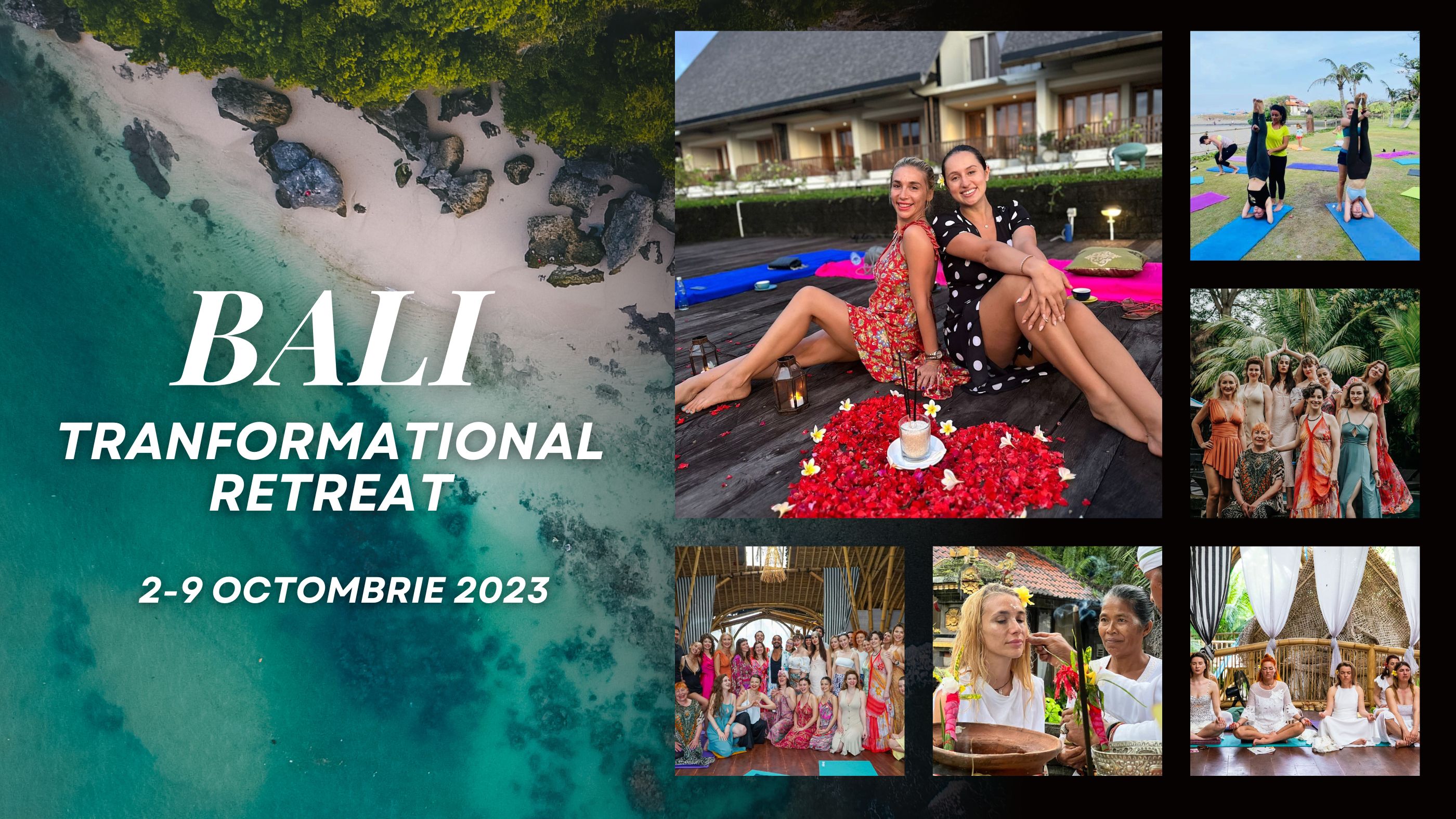 Retreatul transformational in Bali (2-9 octombrie) alaturi de noi este alegerea perfectă dacă sunteți gata să vă initiati in yoga, spiritualitate, dezvoltare personala sau sa va aprofundați practica în timp ce vă relaxati si bucurați de frumusețea uluitoare si vindecatoare a Bali-ului. Ideal atât pentru participantele începătoare , cât și pentru intermediare-avansate, această retragere se concentrează pe recuperarea puterii voastre personale, frumusetii, resurselor interioare si potentialului vostru cel mai inalt!